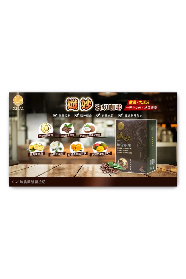 MCT油(中鏈脂肪酸油)/阿拉比卡咖啡/80種綜合蔬果發酵物/藤黃果萃取物/山茶花萃取物/複合柑橘瓜拿納萃取物/非洲芒果籽萃取物