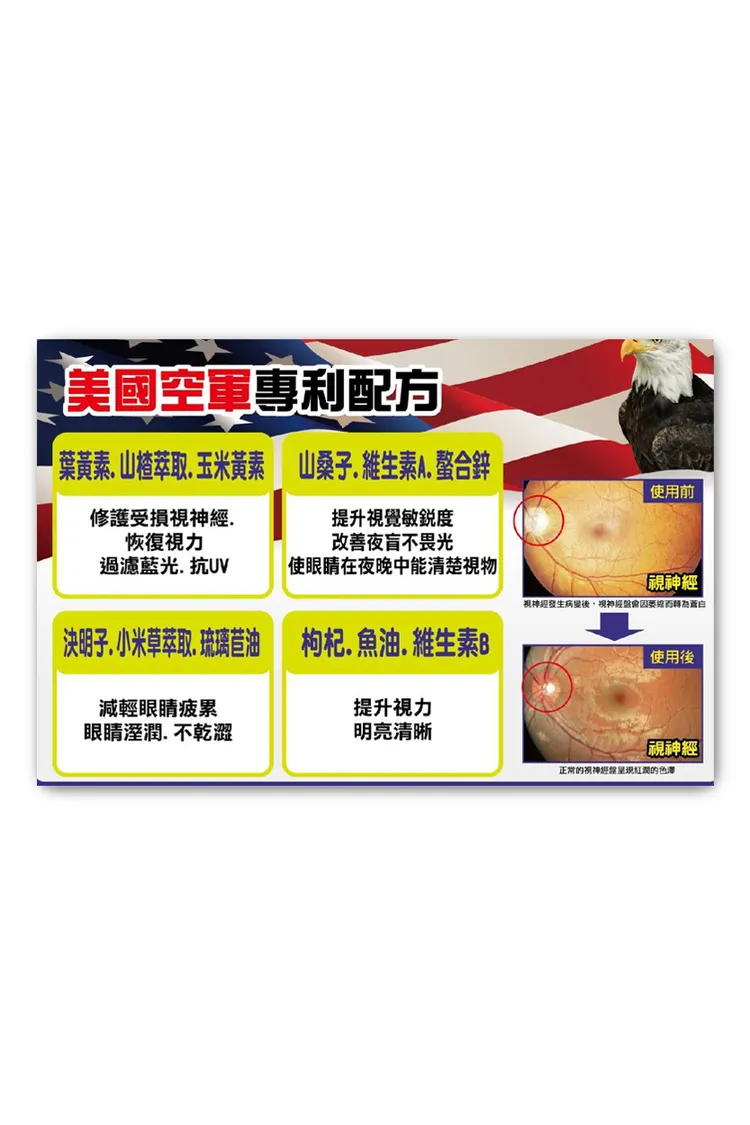 葉黃素30mg/紅藻/枸杞/決明子/山桑子/深海魚油/山楂/小米草/琉璃苣油/螯合鋅/玻尿酸/卵磷脂/玉米黃素/維生素A B1 B2 B6 B12