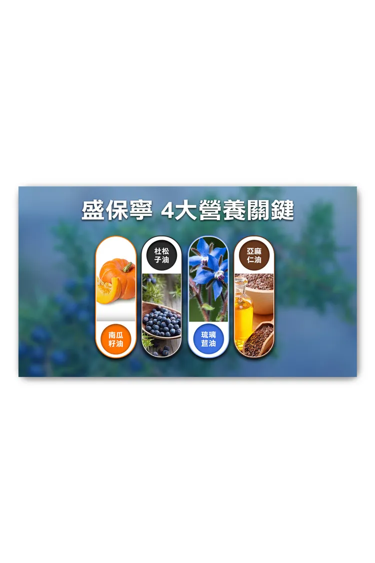 四大主成分:杜松子油/琉璃苣油/亞麻仁油/南瓜籽油