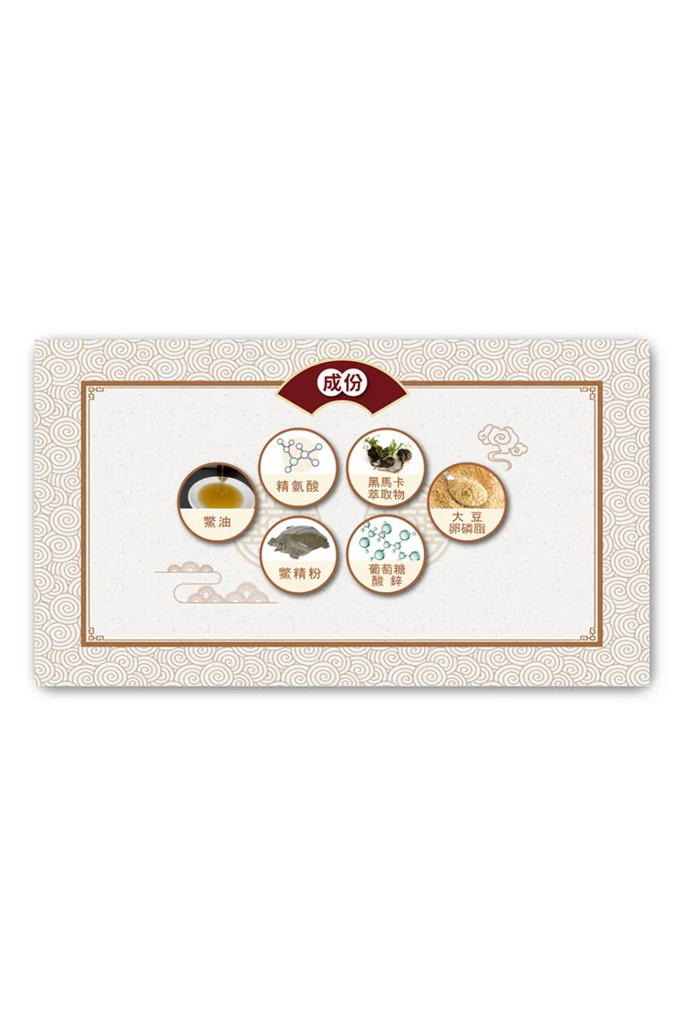 鱉油/鱉精粉/精氨酸/葡萄糖酸鋅/黑馬卡萃取物/大豆卵磷脂